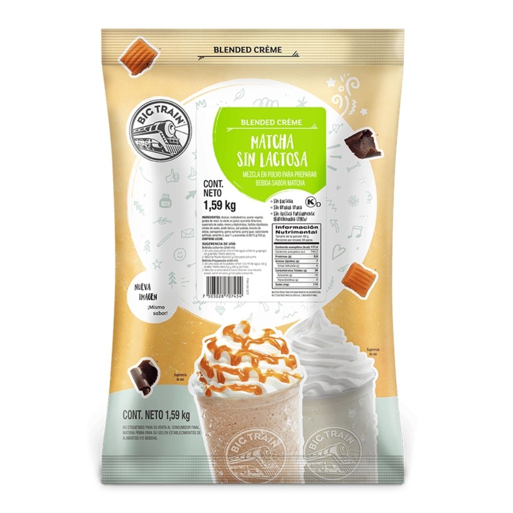 Matcha sin Lactosa de la línea Blended Crème de Big Train te ofrece un sabor delicioso y único.